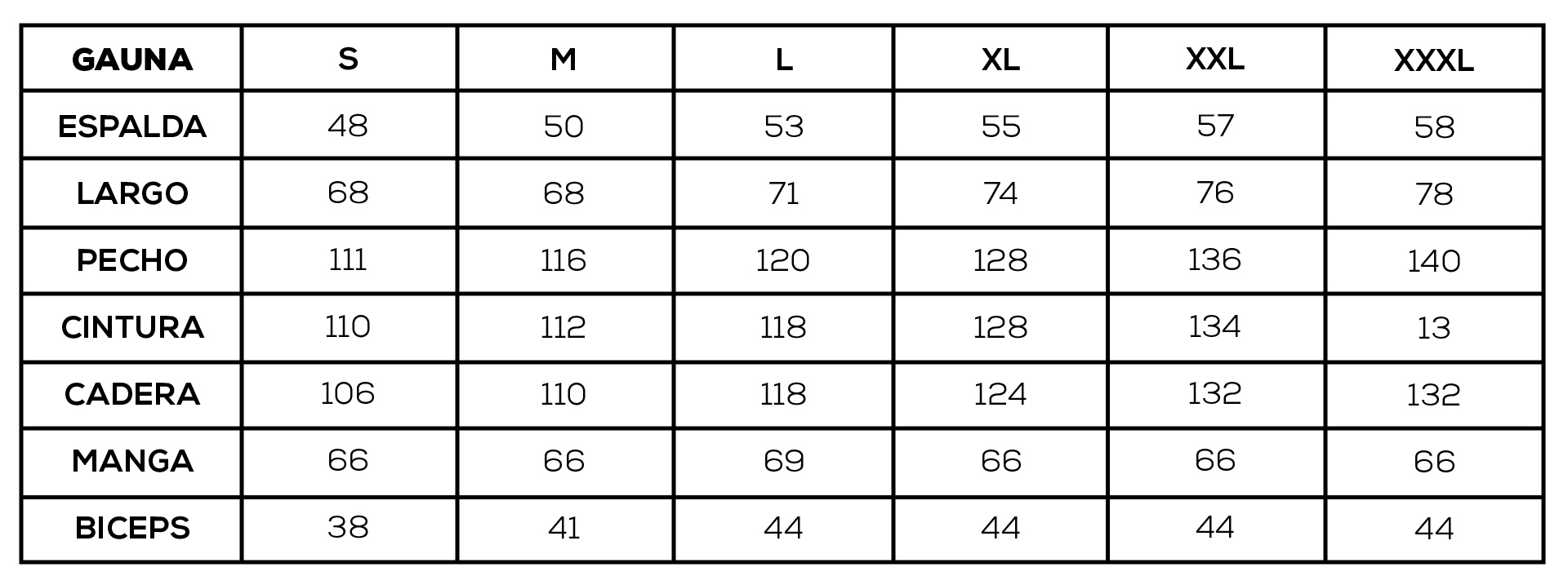 TABLA DE TALLES