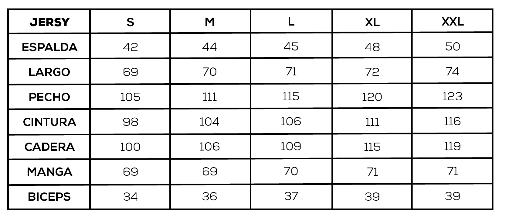 TABLA DE TALLES